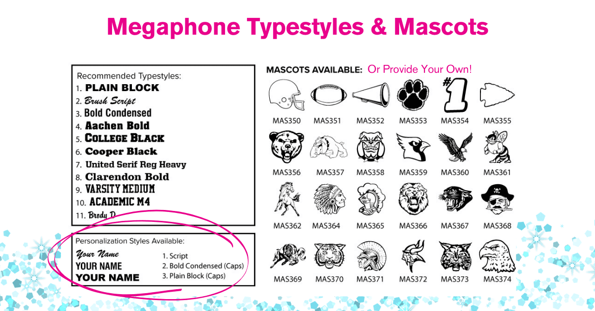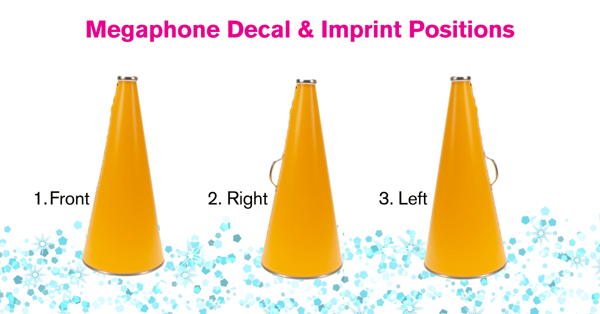 Custom decals can be applied to all sizes of our riveted megaphones and molded plastic megaphones. Please note: Decals do not apply to our Mini Pep megaphones.