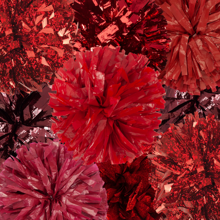 Not all Reds are the same — and the right material can completely change the look of your pom! Use this guide to compare colors across Plastic, Wet Look, Metallic, and Specialty materials. We’ve organized everything into color families so you can quickly spot the best shade for your team. This exclusive tool makes choosing colors easier than ever.