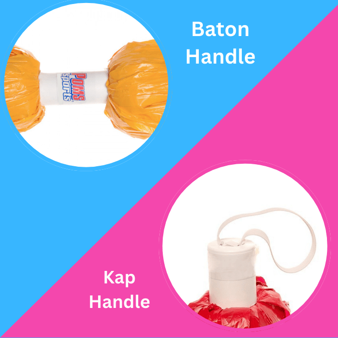 Our Lite Size Quick Ship Poms come standard with a Kap handle.
